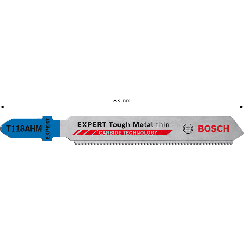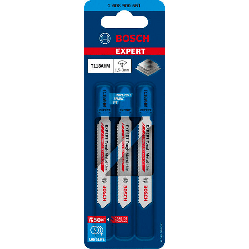 Herausragende Lebensdauer in Edelstahlblechen! Carbide-Leiste bietet Steifigkeit und Festigkeit Das Schneiden von Blechen aus Edelstahl ist eine Aufgabe, die Metallarbeiter täglich durchführen müssen. Auch bei der Montage von Küchen und in Industrie- oder Bürogebäuden ist dies üblich. Profis, die diese Arbeit erledigen, benötigen ein Blatt, das zuverlässig ist und weiter funktioniert, damit sie nicht ständig die Blätter austauschen müssen. Das Bosch EXPERT Stainless Steel-Stichsägeblatt für dünnes Material gibt es in zwei Versionen: Das T118 AHM für sehr dünne Bleche hat eine sehr feine Zahnteilung. Das T118 EHM mit mittelfeinen Zähnen ist daher der beste Wahl für Profis, die dünne Bleche aus hochfestem Stahl oder Rohre mit mittleren bis dünnen Wänden schneiden müssen. Überragende Lebensdauer dank Bosch Carbide Technology
