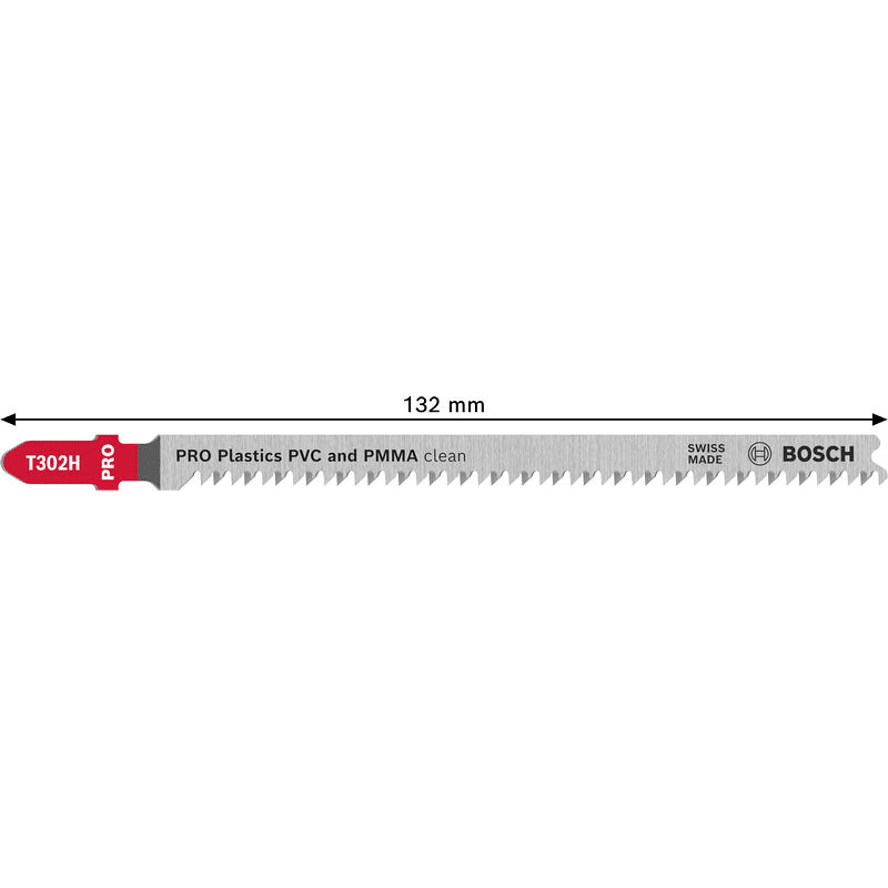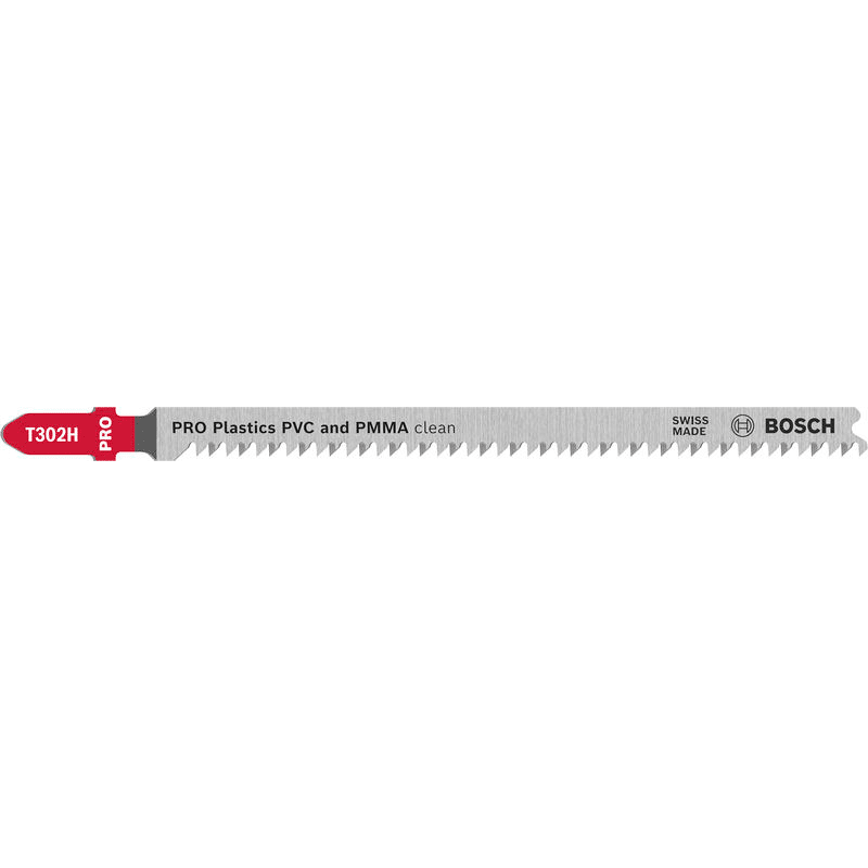 Präzises Schneiden von Kunststoffen! Konisch geschliffener Blattkörper für feine, saubere Schnitte Zum Schneiden von thermoplastischem Material ist ein scharfes und effizientes Stichsägeblatt erforderlich, das die Wärmeentwicklung reduziert und ein Schmelzen des Materials verhindert. Wir haben das PRO Plastics PVC and PMMA clean T302H entwickelt, um saubere Schnitte in thermoplastischen Platten, Rohren und Profilen zu ermöglichen.