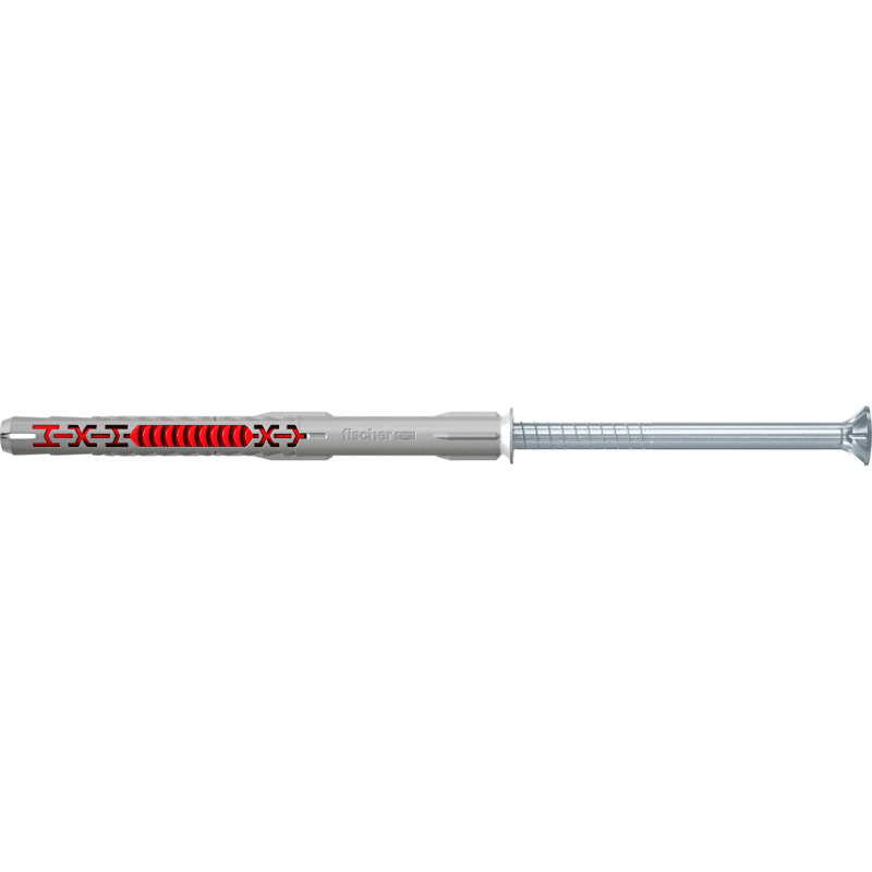 Der fischer Langschaftdübel DuoXpand mit zwei Verankerungstiefen ist mit der fischer Senkkopfschraube für Mehrfachbefestigungen von nichttragenden Systemen in Beton, Mauerwerk und Porenbeton zugelassen. Durch seine spezielle Lamellengeometrie und der Materialkombination verspreizt sich der Dübel optimal und materialschonend im jeweiligen Baustoff. Das Sortiment umfasst die Durchmesser 8 und 10 und Dübellängen bis 230 mm. Der DuoXpand mit der Senkkopfschraube ist besonders für die Befestigung von Holzkonstruktionen geeignet.
