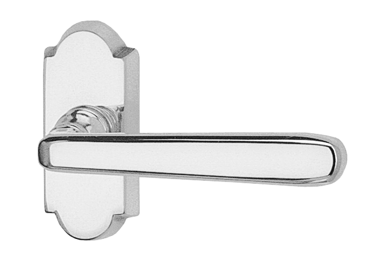 SI-Langschild-Drückergarnitur Modell Alt Wien aus Messing, ohne Zylinderabdeckung, ohne Hochhaltefeder, inkl. Schrauben