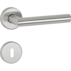 Die stilvolle Rosettengarnitur macht Innentüren komplett. Mit der zeitlosen Drückerform bleiben Türen jederzeit attraktiv.