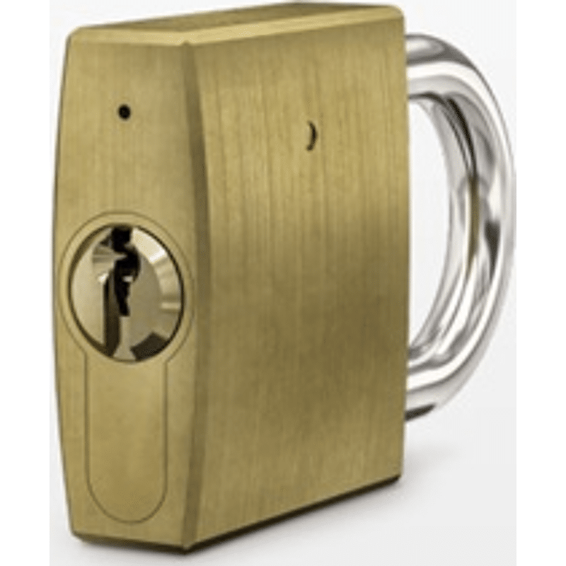 Vorhangschloss System N-tra lichte Bügelhöhe 64 mm gleichschließend Messing matt